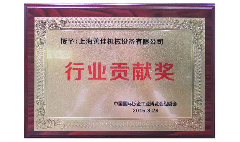 2015年8月28日CISIE2015中国国际钣金工业博览会在广州隆重举行;会上,上海善佳被中国国际钣金工业博览会组委会授予“行业贡献奖”,