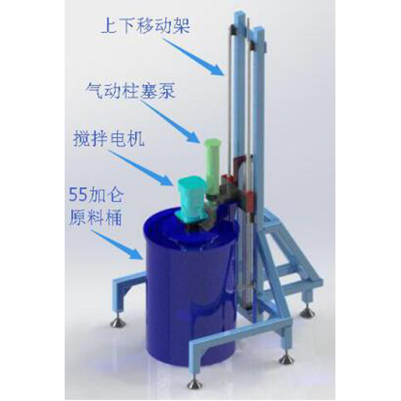 A料自动加料装置 产品型号: TAGS: 400-066-3953 产品描述 A原料自动加料及自动搅拌机构: 容量: 55加仑(容量200KG原料) A料自动加料装置功能:1)自动搅拌原料,防止原料分层,2)系统自动进给原料,无滴漏,快捷方便,3)上盖自动上升,方便替换原料桶,4)气动式送料,干净,快速、节能